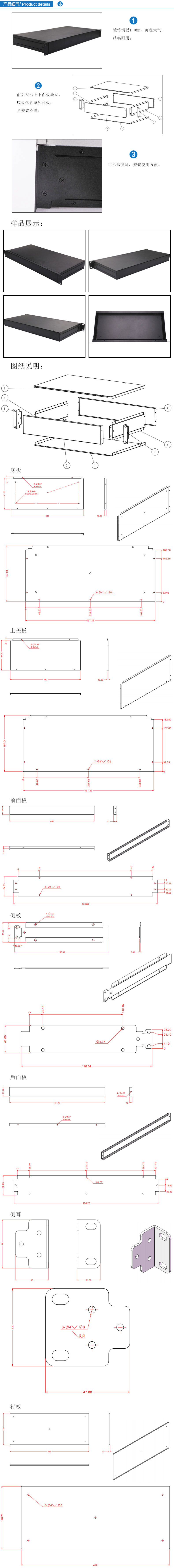 2.前后左右上下面板獨立,底板包含單獨襯板, 易安裝檢修;