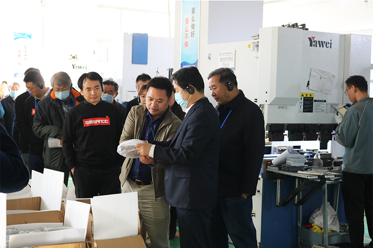 古崢總經理向參觀團詳細介紹了企業的設計研發、生產制造等相關情況,就企業的發展前景及規劃進行了交流,固而美一直履行著“快速交付 精益求精”的經營理念,以“讓產品從外觀上追上德國,為中國制作2025加分”為使命,立志成為中國金屬殼體行業標桿企業。公司擁有自主研發的OA管理系統及VPS系統,具有強大的數字化生產經營能力。